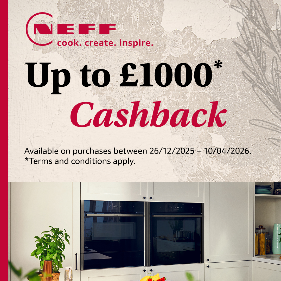 • £1000 cashback will be offered with a purchase of 7 qualifying NEFF kitchen appliances including an oven.